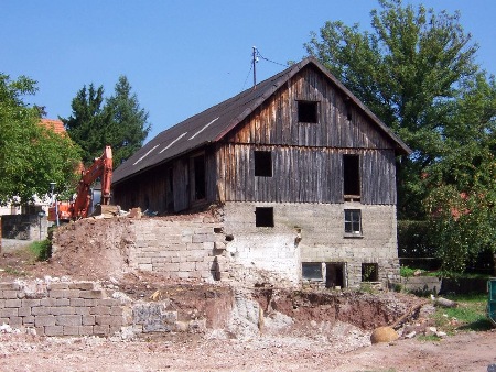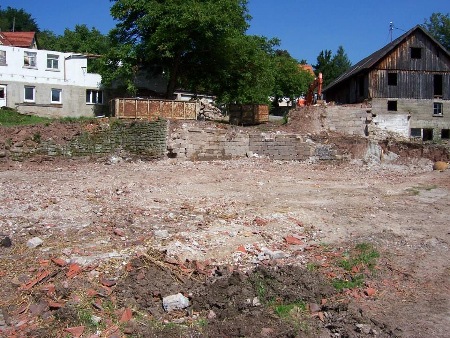 Abriss des alten Stalles - heute der Reitplatz.