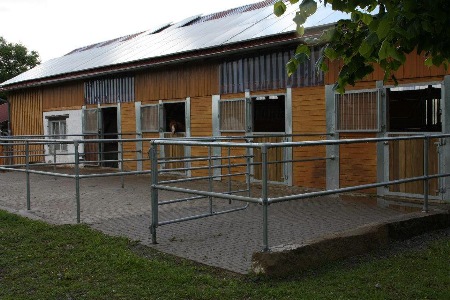 Eine Maschinenhalle mit angrenzendem kleinem Stall - heute eine Stallanlage.