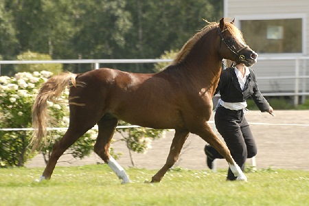 Welsh B, Dunkelfuchs, Prädikat: Ster, Stockmaß 1,29 m, Züchter: Familie Valk, Holland